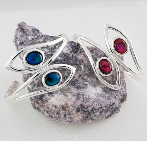 Abalone Double Stone Bangle in Silver Plate. Available set with Blue or Pink Abalone Shell.