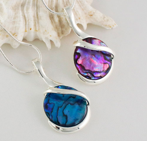 Abalone shells are found in many parts of the world. In New Zealand, they are known as Paua Shell. Ormer, Perlemoen, Venus-ears and Muttonfish, are other common names. The meat is a seafood delicacy and is environmentally farmed. The shells used for jewellery are a by-product of this industry. When carefully cut and polished the beautiful colours and patterns in the shells come into their own. The shells are often dyed in vibrant shades of blue, pink, purple, and green, in addition to their natural blue and green colours.