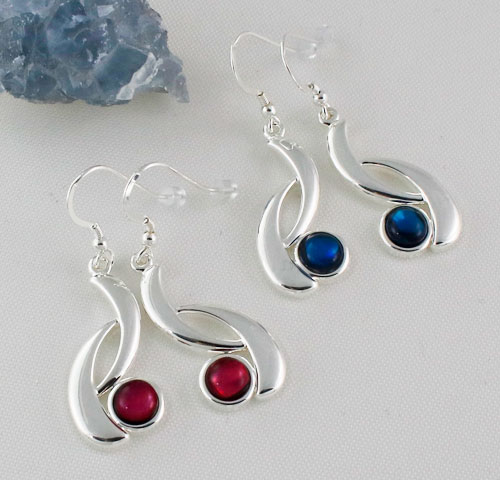 Abalone Wave Earrings. Available set with Blue or Pink Abalone Shell. These earrings have Sterling Silver wires and a Silver Plated drop of 30mm.