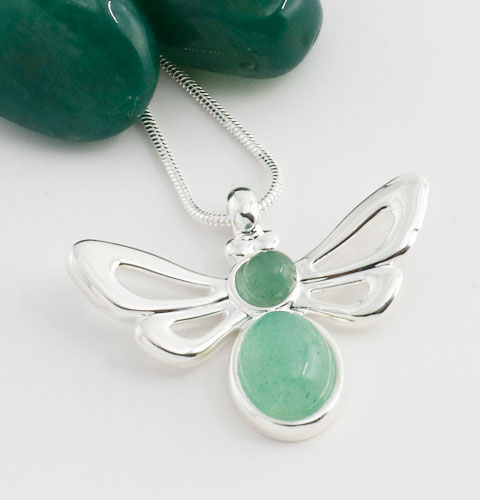 The Aventurine Bee Pendant in Silver Plate has a drop of 25 mm.