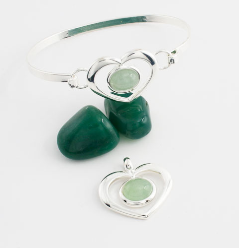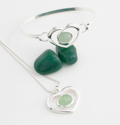 The Aventurine Small Heart pieces both come in gift packs, a pouch for the bangle and a box for the pendant, and they are backed by our quality guarantee. You can save when you buy both the pendant and bangle together.