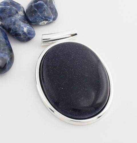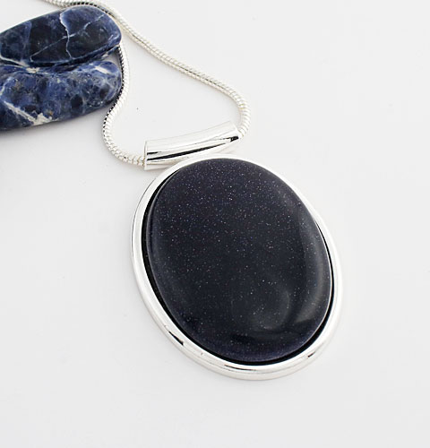 Blue Goldstone Large Oval Pendant is crafted in quality Silver Plate and has a drop of 45 mm.