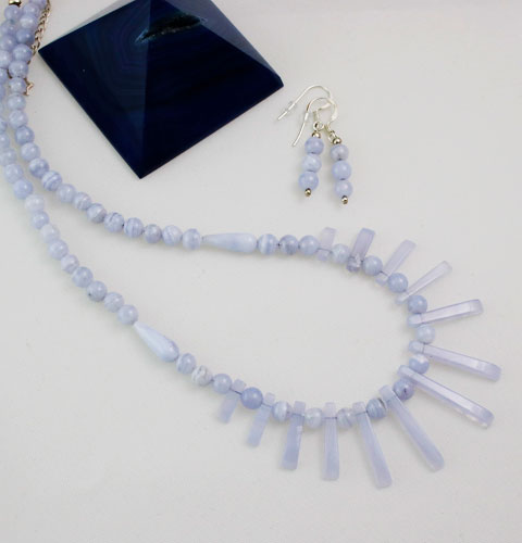 Blue Lace Agate Necklace Set with Sterling Silver fastener and ear hooks.