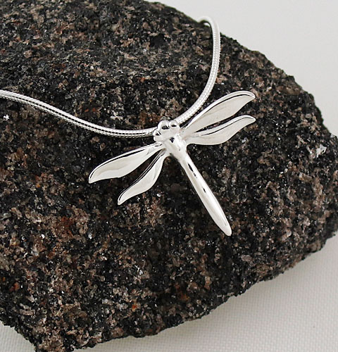The Dragonfly Pendant in Sterling Silver has a pendant drop of 20 mm and an 18″ (45 cm) Sterling Silver snake chain. If you would like a longer or shorter chain, please email before you order, using the following link Contact Us
