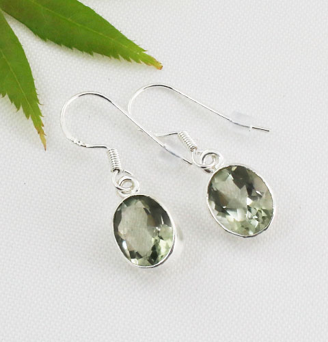 The Green Amethyst Small Oval Earrings are crafted in Sterling Silver and have a drop of 15 mm/
