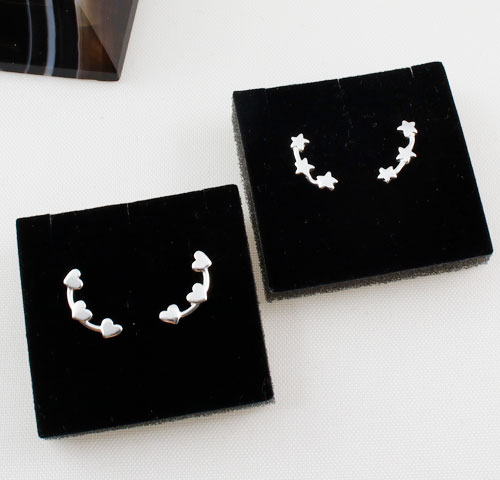 The Hearts and Stars Climber Earrings in Sterling Silver measure 14 mm in length.