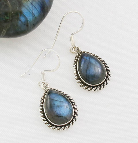 The Labradorite Rope Edge Teardrop Earrings in Sterling Silver have a drop of 20 mm. They are gift-boxed and backed by our quality guarantee.