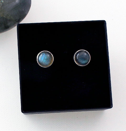 The Labradorite Round Stud Earrings are crafted in Sterling Silver and have a diameter of 7 mm. They are gift-boxed and backed by our quality guarantee.