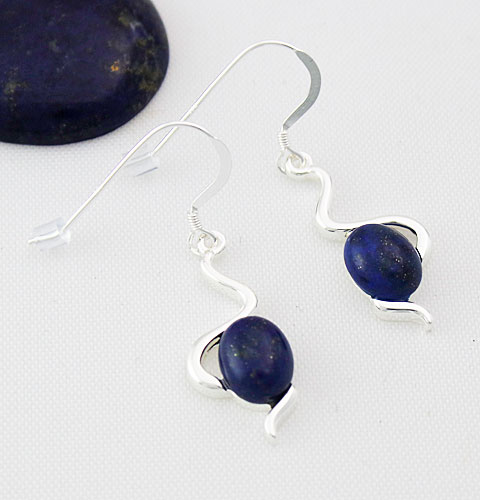 The Lapis Lazuli Wiggle Earrings have Sterling Silver ear hooks and a Silver Plated drop of 25 mm.