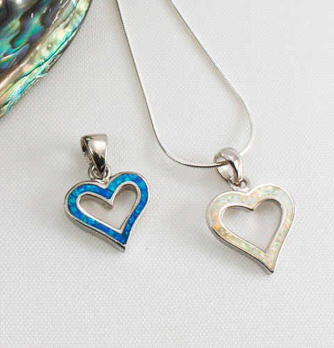 The Opalique Open Heart Pendant is crafted in Sterling Silver. It is available in Blue or White and has a pendant drop of 20 mm.