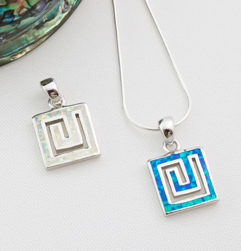 The Opalique Square Necklace is crafted with Sterling Silver and has a pendant drop of 20 mm.