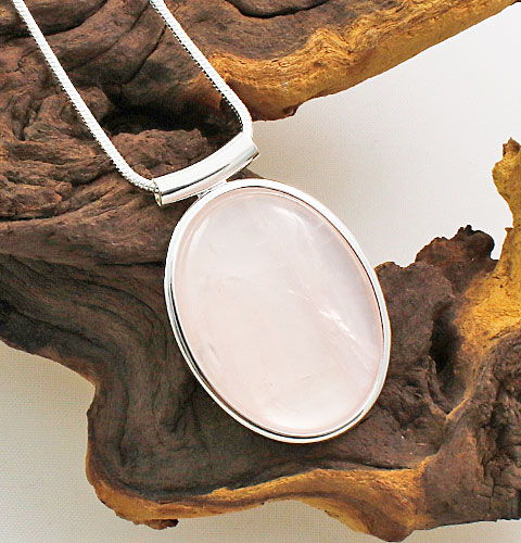 The Rose Quartz Large Oval Drop Pendant is crafted in quality Silver Plate and has a drop of 45 mm.