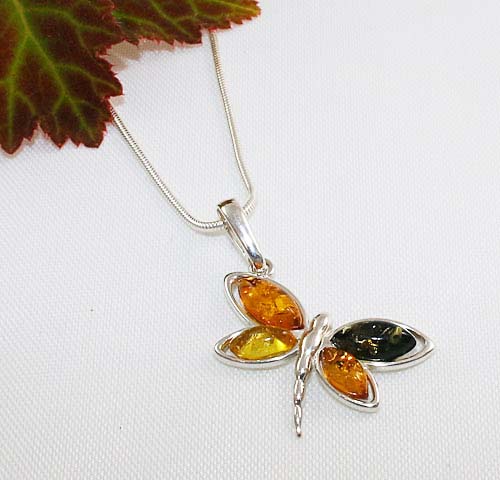 The Amber Dragonfly Necklace is crafted in Sterling Silver and includes an 18-inch (45 cm) Sterling Silver snake chain, if you need a longer or shorter chain, please contact us before placing your order using the following link Contact Us.