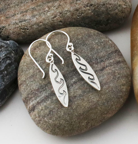 The Surfboard Drop Earrings are crafted in Sterling Silver and have a drop of 20 mm.