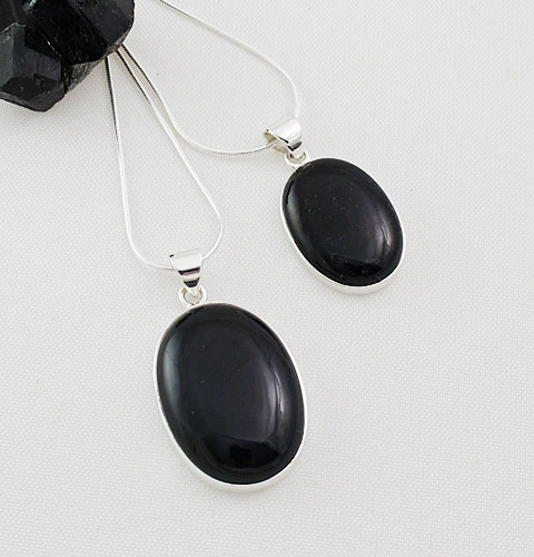 The Whitby Jet Oval Pendants are crafted in Sterling Silver and available in two sizes. The medium has a drop 35 mm and the small has a drop of 30 mm.
